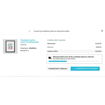 Motywuj swoich klientów do dokonywania większych zakupów dzięki inteligentnemu przypomnieniu o kwocie potrzebnej do uzyskania darmowej wysyłki. Moduł Prestashop wyświetla czytelną grafikę po dodaniu produktu do koszyka oraz bezpośrednio w koszyku.