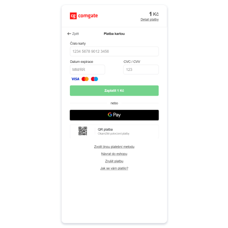Comgate to czeska bramka płatnicza, która umożliwia sprzedawcom akceptowanie płatności online w ich sklepach internetowych i witrynach. Obsługuje szeroką gamę metod płatności, w tym płatności kartami (Visa, Mastercard), przelewy bankowe i płatności mobilne. Comgate koncentruje się na łatwej integracji, szybkim przetwarzaniu płatności i przejrzystych cenach bez ukrytych opłat. Wysoki poziom bezpieczeństwa i obsługi klienta sprawiają, że jest to popularny wybór wśród małych i średnich firm w Czechach i na Słowacji.